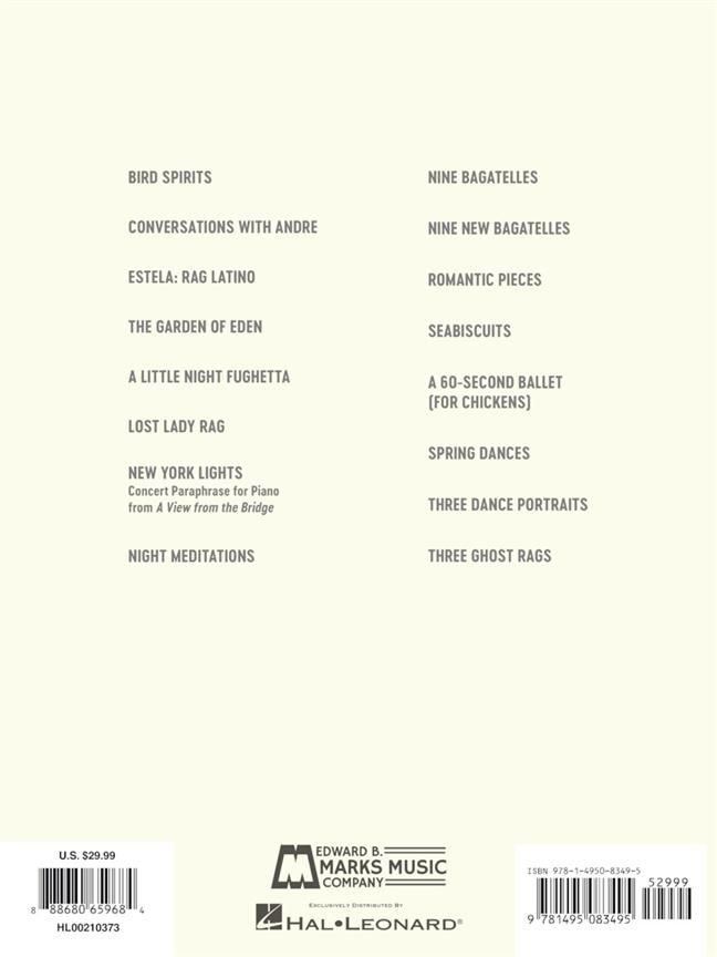 The first major comprehensive collection of William Bolcom's piano music, including Three Dance Portraits, Nine Bagatelles, Nine New Bagatelles, Three Ghost Rags, and more, with some works published for the first time.