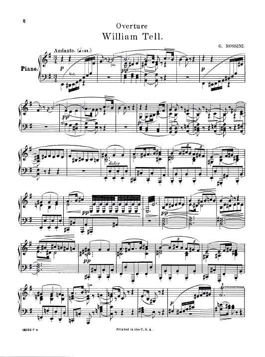 Gioacchino Rossini's William Tell Overture, whose finale is famous for its use in the radio and TV series The Lone Ranger, is here presented in a Piano arrangement that captures all the excitement of the Orchestral original.