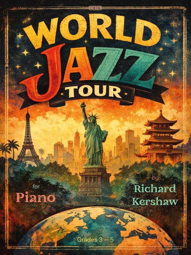 Sieben bekannte Lieder aus aller Welt im leichten Jazz-Piano-Stil.