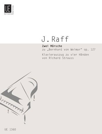 Besonders Märsche hat Raff in seinen Orchesterkompositionen bedacht. Die beiden vorliegenden ergänzen die Ouvertüre Eine feste Burg ist unser Gott zur Tragödie Bernhard von Weimar seines Schwagers Wilhelm Genast. Der hohe musikalische wie auch pädagogische Wert dieser Musik zeigt sich in dieser Bearbeitung für Klavier zu 4 Händen von Richard Strauss, der das Werk damit dem Einsatz in Studium und Unterricht öffnete.