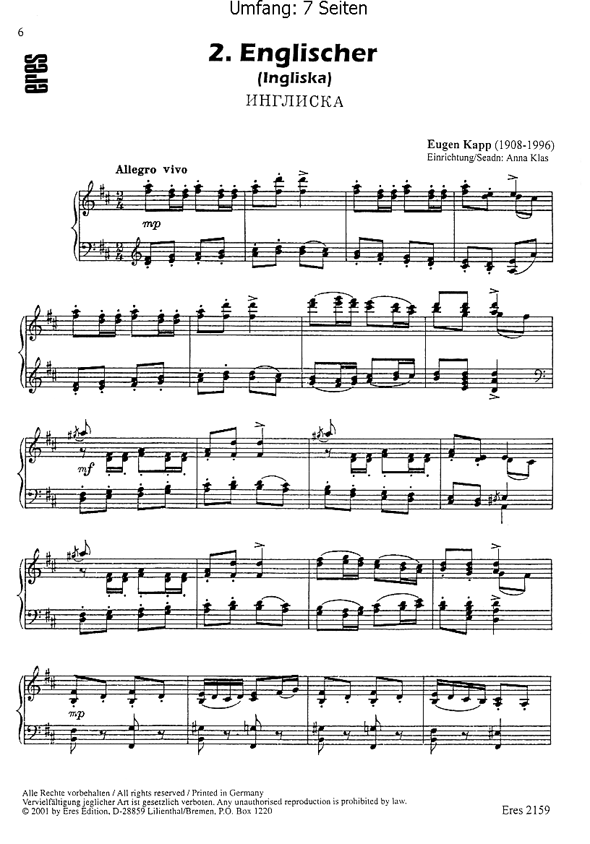 Zwei Tänze aus Estland. 1. Mittelfuss (Labajalg)2. Englischer (Ingliska)Eres Estonia Edition