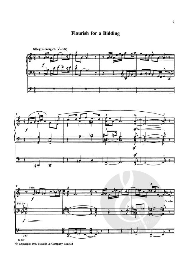 Intrata No 2 was found in a small manuscript book in the library of the Royal College of Music, with a dedicated to Sir Walter Adcock on his 80th birthday, 29 December 1941. It is a piece that deserves to be included in Howells's oeuvre. Dated 1969, Flourish for a Bidding was written for the Royal College of Music Centenary Fund, was auctioned and bought by Novello & Company. Flourish has a stylistic characteristics in common with Rhapsody No 4 and the Epilogue 1974. St Louis Comes to Clifton was a private publication entitled 'A Garland for DGAF' and given to the late Douglas Fox, a distinguished one-armed Organist who was Director of Music at Clifton. Herbert Howells is a giantof 20th century Anglican church music, the remainder of whose oeuvre is in the process of gaining new appreciation. He left a body of distinguished Organ music, of which these three works are interesting examples.