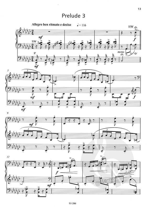 Nicht nur wegen der Orgelbegeisterung Gershwins bieten sich seine '3 Prelùdes' geradezu an, auf der Orgel verwirklicht zu werden. Es sind Präludien im traditionellen Gewand, Charakterstücke mit jazzidiomatischen Spielfiguren und aufregenden Harmonien. Es ist deshalb sicher angemessen, diese Miniaturen in der Kirche und insbesondere im Orgelkonzert zu verwenden. Jazzmusik auf der Kirchenorgel? Warum nicht! Aufgeschriebene Jazzmusik ist zwar keine echte imrpovisierte Jazzmusik, dennoch hat Gershwin den Jazz (Miles Davis, Herbie Hancock) unzweifelhaft beeinflusst und seine 'Preludes' sind auch für das Orgelrepertoire eine echte Bereicherung.