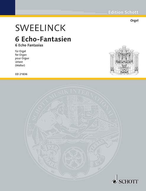 Sweelincks 6 Fantasien op de manier van een echo' bilden wohl die erste Sammlung von Orgelstücken, in der das Echo systematisch verwendet wird. Hier liegt eine dreiteilige Anlage zugrunde: Imitationen, Echoabschnitt, Toccata. Der Notentext wird nach der 2. durchgesehenen Edition der Gesamtausgabe, Amsterdam 1974, geboten. Die 6. Fantasie ist beigegeben nach der erweiterten Gesamtausgabe, Amsterdam 1943. Als Schlüssel sind ausschließlich F4 und G2 verwendet. Die Verteilung auf die beiden Hände wurde an einigen Stellen vereinheitlicht.