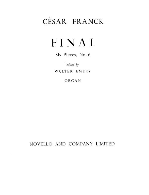 Final from 6 Pieces For Organ/em> by Cesar Franck. Edited by Walter Emery.