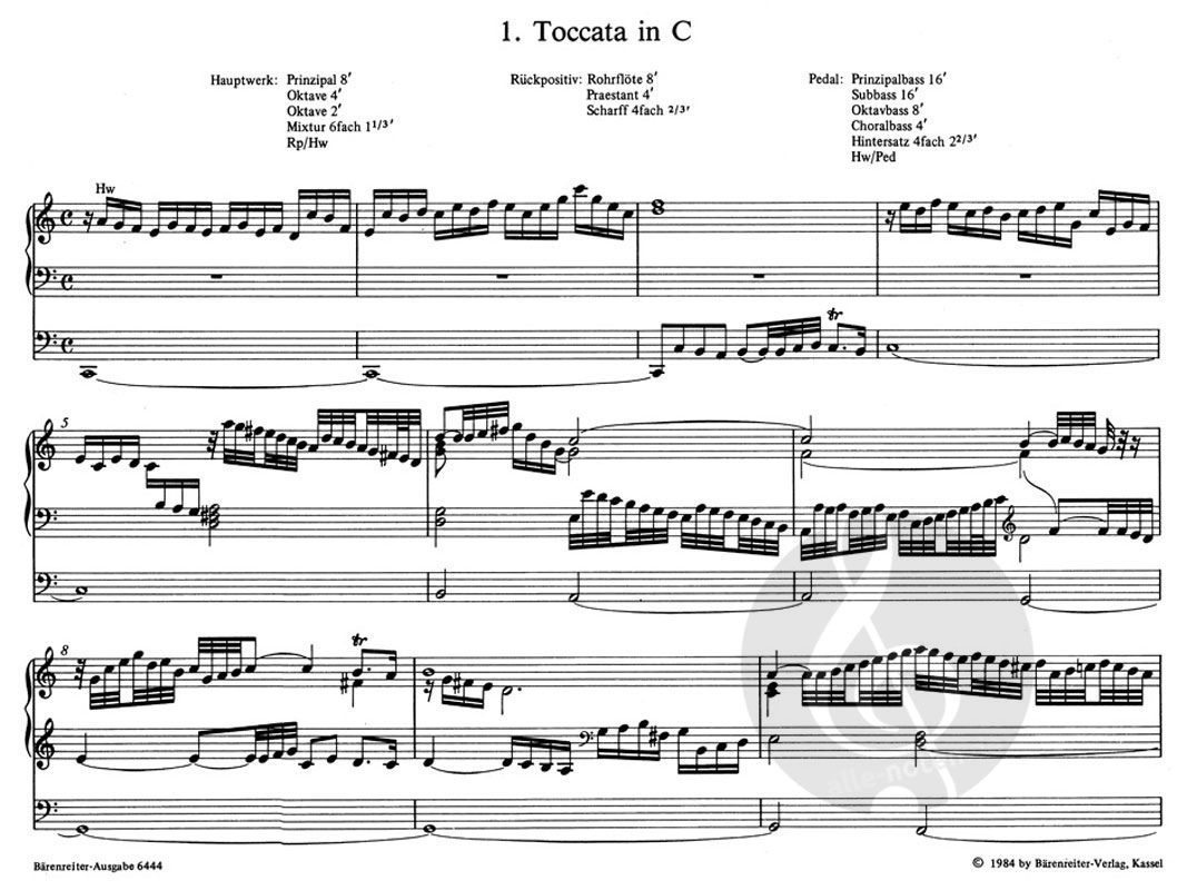 Praeludium und Fuga e-Moll, Toccata und Fuga B-Dur, 4 Toccaten, Ricercar C-Dur, 5 Fugen