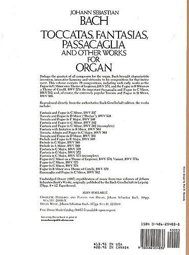 Bach's towering musical achievement was to present in its final shape, the 'fabric of polyhony' (Grove Dictionary). This is no more axiomatic than in his Preludes and Fugues for Organ. Regarded as the world's greatest composer for organ, Bach coupled mastery of the instrument with his genius for composition to produce some of the richest and most beautiful music of all time. This comprehensive volume - reproduced directly from the authoritave Bach-Gesellschaft edition - reprints 25 sets of preludes and fugues, i. e compositions written as fugues. Individual Preludes and Fugues composed over the years are not included.