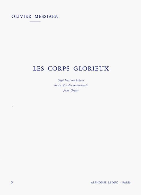 The Glorious Bodies, by Olivier Messiaen is a composition that depicts his Roman Catholic faith. Written for organ in 1939, it is a mix between Indian music and Gregorian Plainsong. This third volume includes the final threepieces of the whole composition: 5. Force et agilité des Corps Glorieux, 6. Joie et clarté des Corps Glorieux and 7. Le Mystère de la Sainte-Trinité. This piece is divided into 7 sections: 1. Subtilité des Corps Glorieux 2. Leseaux de la Gr ce 3. L'ange aux parfums 4. Combat de Mort et de la Vie 5. Force et agilité des Corps Glorieux 6. Joie et clarté des Corps Glorieux 7. Le Mystère de la Sainte-Trinité. Olivier Messiaen (1908-1992) was a Frenchorganist and composer who was also passionate about ornithology and one of the most important composers of his century. Inspired by Japanese music, he had a very special way of composing, and his work can be identified by itscomplexity, its diatonic aspect, its harmony with limited transposition, its colour and its additive rhythms. He composed many works related to ornithology and birdsong, including the Bird Catalogue in 7 volumes and the Treatiseon Rhythm, Colour and Ornithology in 7 volumes.