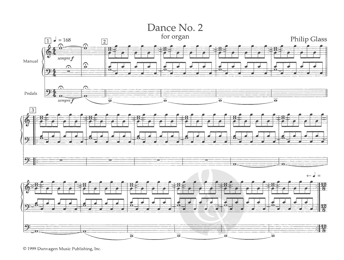 A solo organ piece by the innovative North American composer Philip Glass.
