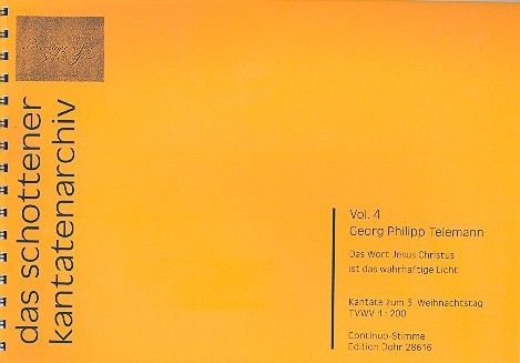 Reihe: Das Schottener Kantatenarchiv Vol. 4. Orgel (Basso continuo) ; Stimme(n). Format: 30 S. - 21 x 29,7 cm.