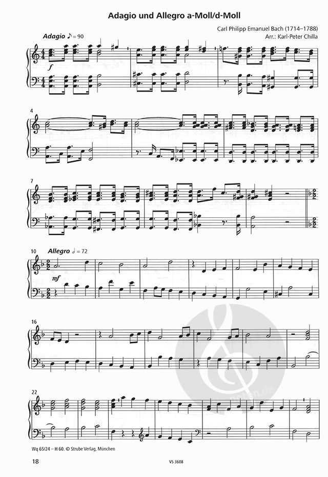 Leicht darstellbare Werke (manualiter und pedaliter) zum Ein- oder Auszug und als Zugabestücke aus Barock, Klassik und Romantik von J. Chr. Bach, J. Rheinberger, D. Scarlatti, A. Chauvet, J. M. Molter, J. H. Berlin u.v.a.