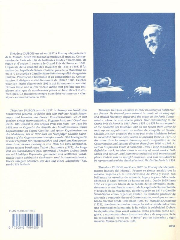 Prélude (D min) et Fugue (D maj); Chant pastoral (C min); Cortège funèbre (F min); La Fête-Dieu (C); Canon (Ab); Alléluia (Eb); Noël (A min); Fiat Lux (E); In Paradisum (G) Offertoire (D min); Thème provençal varié (C min); Marche triomphale (Eb)