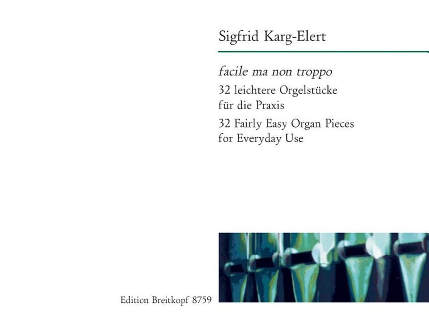 Karg-Elert für Einsteiger Sigfrid Karg-Elert ist längt kein Geheimtipp unter den Organisten, aber seine Orgelwerke gelten als technisch anspruchsvoll. Ein Heft 'Karg-Elert für Einsteiger' tut Not - Martin Weyers Auswahl 'facile ma non troppo' mit kürzeren freien Stücken und Choralbearbeitungen kommt also gerade recht. Die 32 Stücke sind relativ leicht auszuführen. Die Choralvorspiele sind zudem in die heutigen Gesangbuch-Tonarten transponiert. Mit dieser Sammlung kann eine bislang eher unbekannte Seite des Komponisten entdeckt und sogar in der pädagogische Orgelpraxis sinnvoll eingesetzt werden.