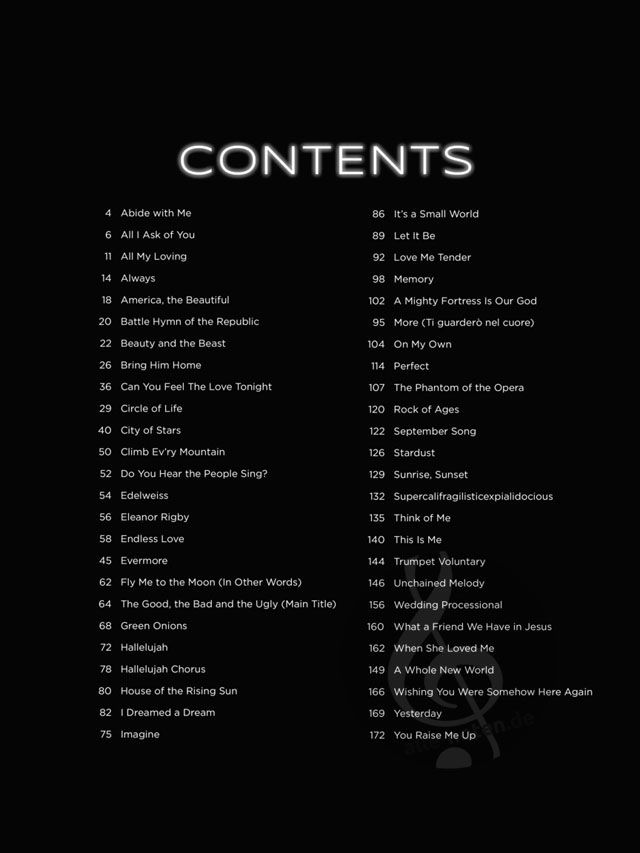 This one-of-a-kind collection features 50 accessible organ arrangements of must-know songs: Abide with Me - Battle Hymn of the Republic - City of Stars - Eleanor Rigby - Green Onions - Hallelujah Chorus - It's a Small World - Love Me Tender - Memory - On My Own - The Phantom of the Opera - Sunrise, Sunset - Trumpet Voluntary - Wedding Processional - You Raise Me Up - and more.