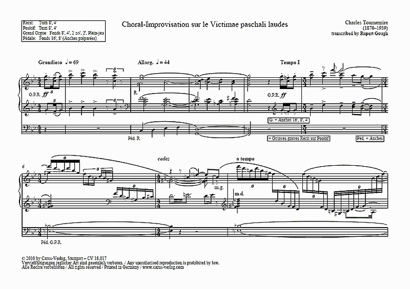Zu Lebzeiten war Tournemire insbesondere als hervorragender Orgelspieler und -improvisator bekannt. Die vorliegenden Improvisationen sind durch Schallplatteneinspielungen von 1930/31 überliefert und werden hier als Transkriptionen der musikalischen Praxis zugänglich gemacht.