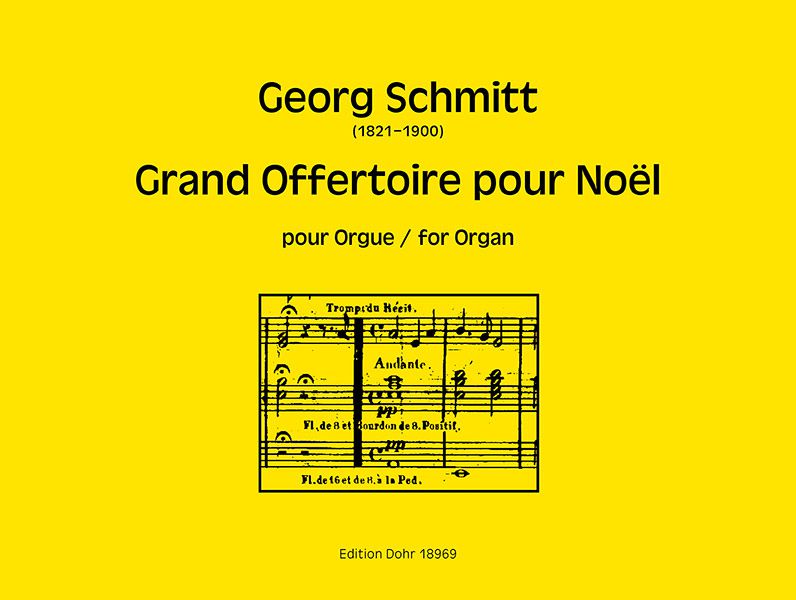 Das klangprächtige, sich aus mehreren kontrastierenden Abschnitten zusammensetzende "Grand Offertoire pour Noël" in E-Dur ist eine der umfangreichsten eigenen Kompositionen, die Georg Schmitt in der von ihm selbst herausgegebenen Orgelmusiksammlung "Le Musée de l'Organiste" veröffentlicht hat und trägt die Widmung "Dédié à M.r [Antonio] PITARCH. / Organiste de la Cathedrale du Puy." Schmitt verarbeitet hier (mindestens) drei weihnachtliche Volkslieder: das international allbekannte "Adeste fideles" ("Herbei, o ihr Gläub'gen") sowie zwei Lieder, die vor allem im französischsprachigen Kulturraum recht bekannt sind: "Il est un petit l'ange" (Noël suisse) und "Noël des bourgeois de Châtres" ("Tous les bourgeois de Châtres, et ceux de Montlhéry"). (Guido Johannes Joerg)
