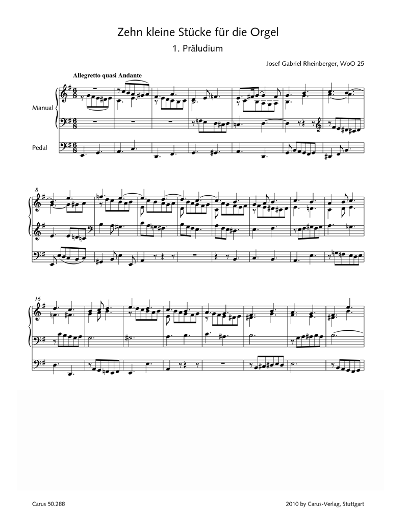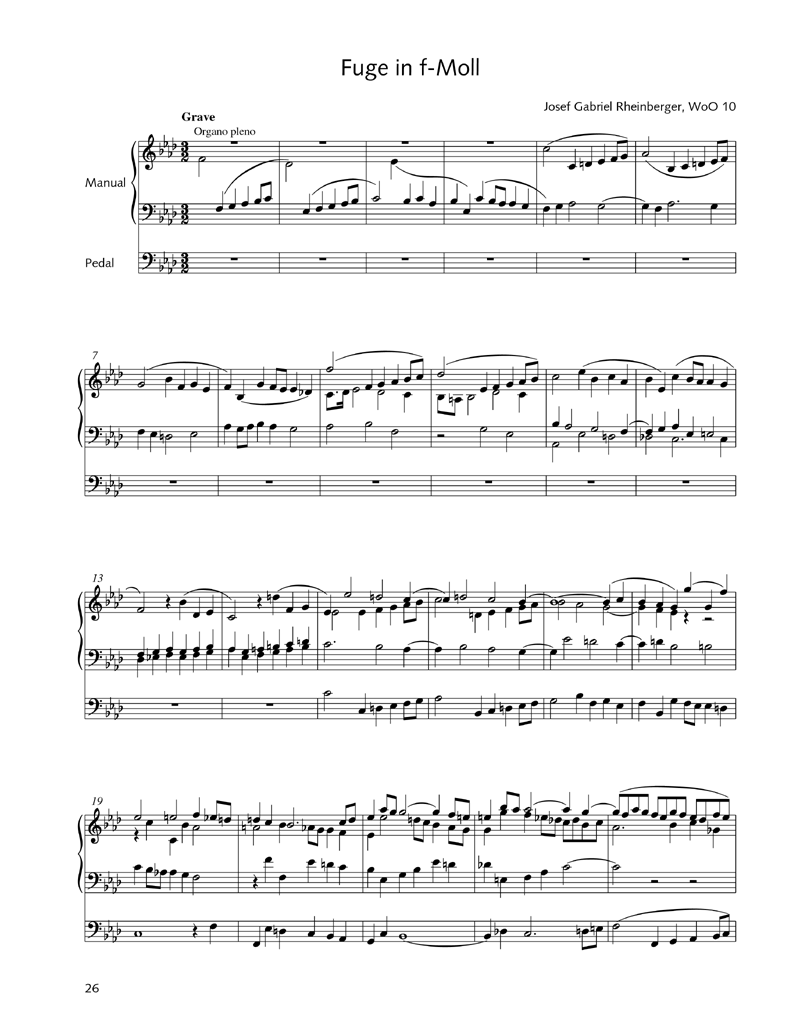 Nach Abschluss der Rheinberger-Gesamtausgabe in 48 Hauptbänden erscheint nun als Supplementband eine Zusammenstellung der besten kleineren Orgelwerke ohne Opuszahl. Neben Jugendwerken und Auftragsarbeiten für zeitgenössische Sammlungen und Orgelschulen enthält der Band auch einzelne Spätwerke, die der auch als Orgelpädagoge berühmte Rheinberger ohne Opuszahl veröffentlichen liess. Ein reiches Repertoire für Gottesdienst oder Konzert und besonders auch für den Orgelunterricht.