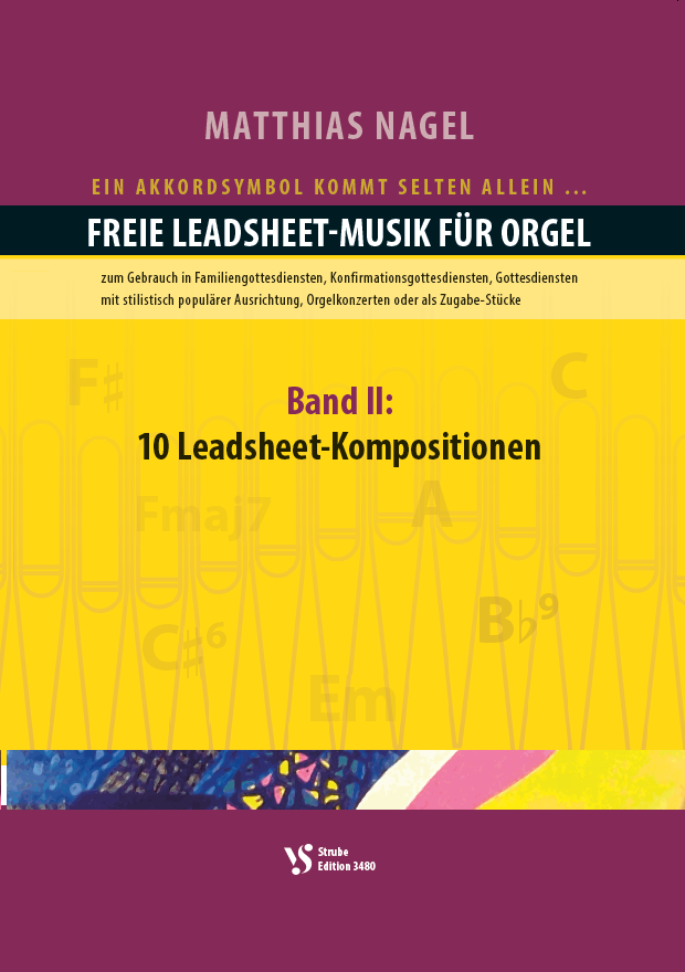 Mit der Ausgabe 'Leadsheet-Musik für Orgel' stellt Matthias Nagel ein neues Format für Orgelmusik vor. Die 7 Kompositionen des ersten Bandes bestehen meistens aus einer ausnotierten Intro und ebensolchen Coda und aus einem nur in Melodie mit Akkordsymbolen notierten Hauptteil (Chorus). Hinzu kommen als Angebot Improvisationsteile. Insgesamt kann und soll die Musik dieses Bandes recht frei gestaltet werden und eröffnet dadurch viele neue Möglichkeiten auf der Kirchenorgel.