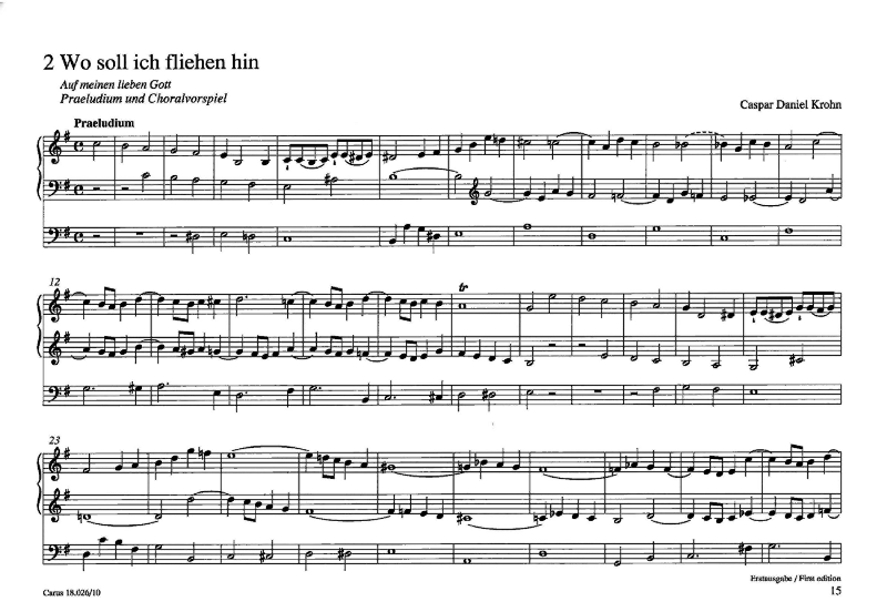 Caspar Daniel Krohn Wo soll ich fliehen hin Präludium und Choralvorspiel