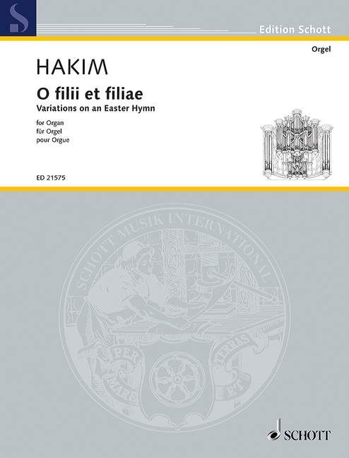 Der bekannte französische Orgelkomponist Naji Hakim, Nachfolger Messiaens an der Kirche St. Trinitè, schrieb diesen kurzen Variationszyklus im Jahre 2012. Das Thema - der gregorianische Osterhymnus 'O filii et filiae' - macht das Werk besonders in der österlichen Zeit in Konzert und Liturgie verwendbar. Vier kurze Variationen beleuchten den cantus firmus mit verschiedenen satztechnischen, kontrapunktischen und harmonischen Mitteln, die Tempofolge ist Andante - Energico - Allegro - Allegro.