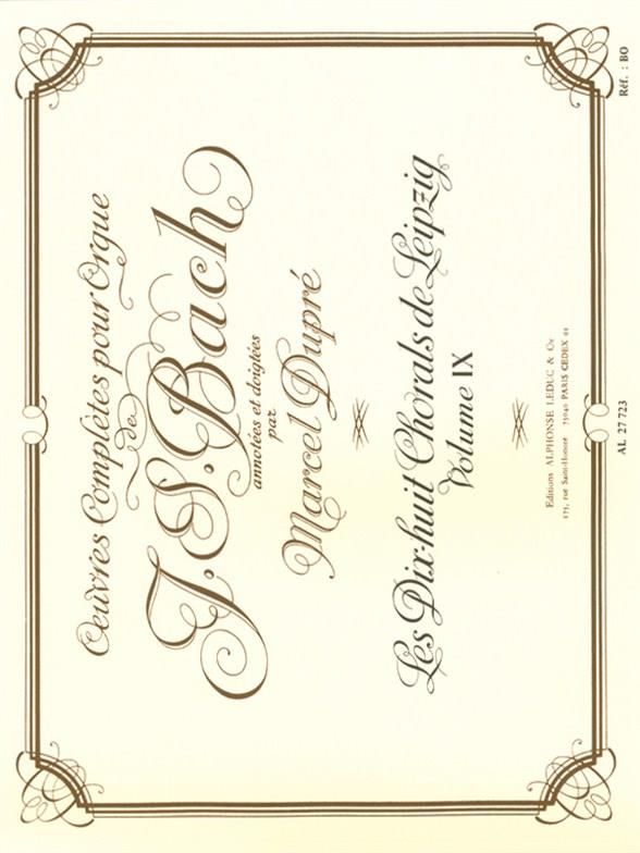 Part of the Organ collection by J. S. Bach, this Volume IX Eighteen Chorals of Leipzig (BWV 651-668) was composed between 1740 and 1750, in Leipzig. This volume is now translated in English and French and features the annotationof Marcel Dupré, a French organist, to help the performer getting the most of the music sheet. This ninth book contains a set of eighteen religious preludes: 1. Come, Holy Ghost 2. Come, Holy Ghost 3. By the rivers ofBabylon 4. Deck thyself, o my soul 5. Lord Jesus Christ, unto us turn 6. O stainless Lamb of God 7. Now thank we all our God 8. From God I will not turn 9. Come now, Saviour of the Heathen 10. Come now, Saviour of theHeathen 11. Come now, Saviour of the Heathen 12. Glory to God on high 13. Glory to God on high 14. Glory to God on high 15. Jesus Christ, our Saviour 16. Jesus Christ, our Saviour 17. Come, God, Creator, Holy Ghost 18. Before thy Throne, I now appear Some of this prelude contains toccatas, sarabandes, fugues, ritornellos and many ornaments. Quite varied, they can also be either joyful or full of lamentations. The preface of these EighteenChorals of Leipzig is well written, with explanations of the comments and descriptions of the techniques to use for a good interpretation of this work.