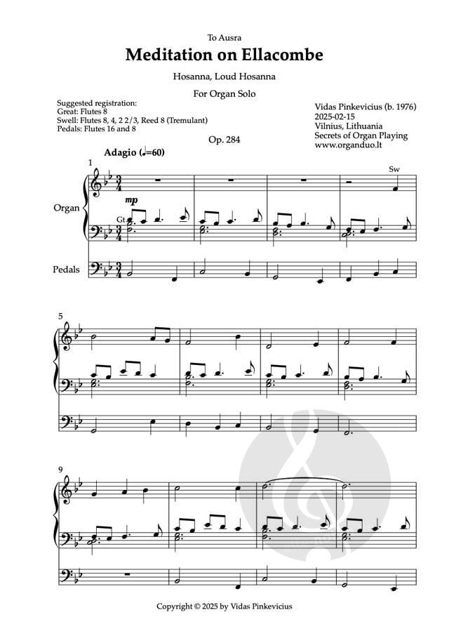Following our very successful previous competitions we were delighted to receive a great many entries from around the world for our latest competition on the theme of 'Organ Music for the Easter Season'. The criteria was the same: to write a piece no more than 3 minutes long which must be suitable for an Organist of moderate standard and for use in a Church setting primarily, but could also be suitable for a concert or recital setting. This booklet contains the top six winning entries and the outright winner by Matthew Corl, 'An Endless Alleluia'. You can read more about the winning entries and composers via our blog:https://www.timknightmusic.com/post/an-endless-alleluia-rises-to-glory Contents:1. An Endless Alleluia - Matthew Corl (competition winner)2. Meditation on Ellacombe - Vidas Pinkevicious3. This Joyful Eastertide - Annette Butters4. Hymnopedie for Easter - Gay Anderson5. Christ, the Lord, Is Risen Today - Pamela Robison