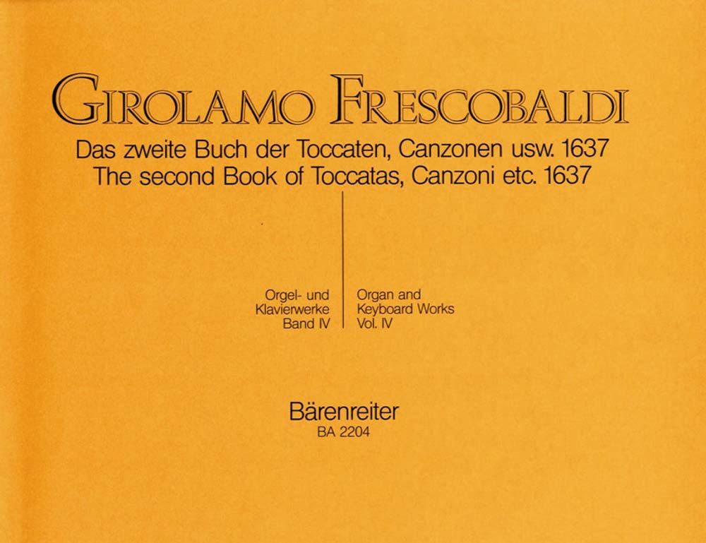 Das zweite Buch der Toccaten, Canzonen usw von 1637. 11 Toccaten, 1 Madrigal, 6 Canzonen, 3 Hymnen und 17 weitere kurze Kompostionen. Orgel / Klavier / Cembalo - Spielpartitur