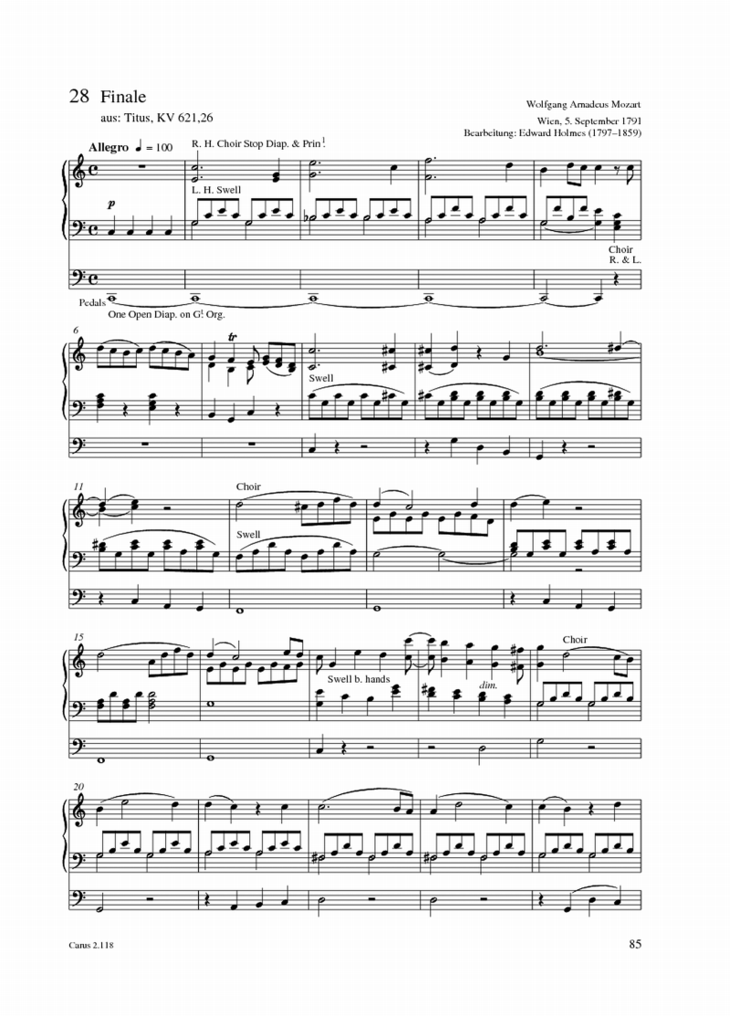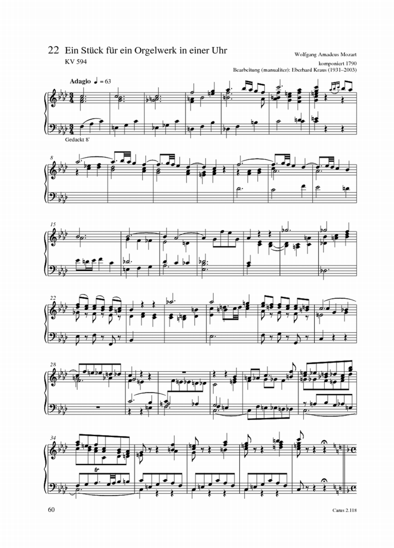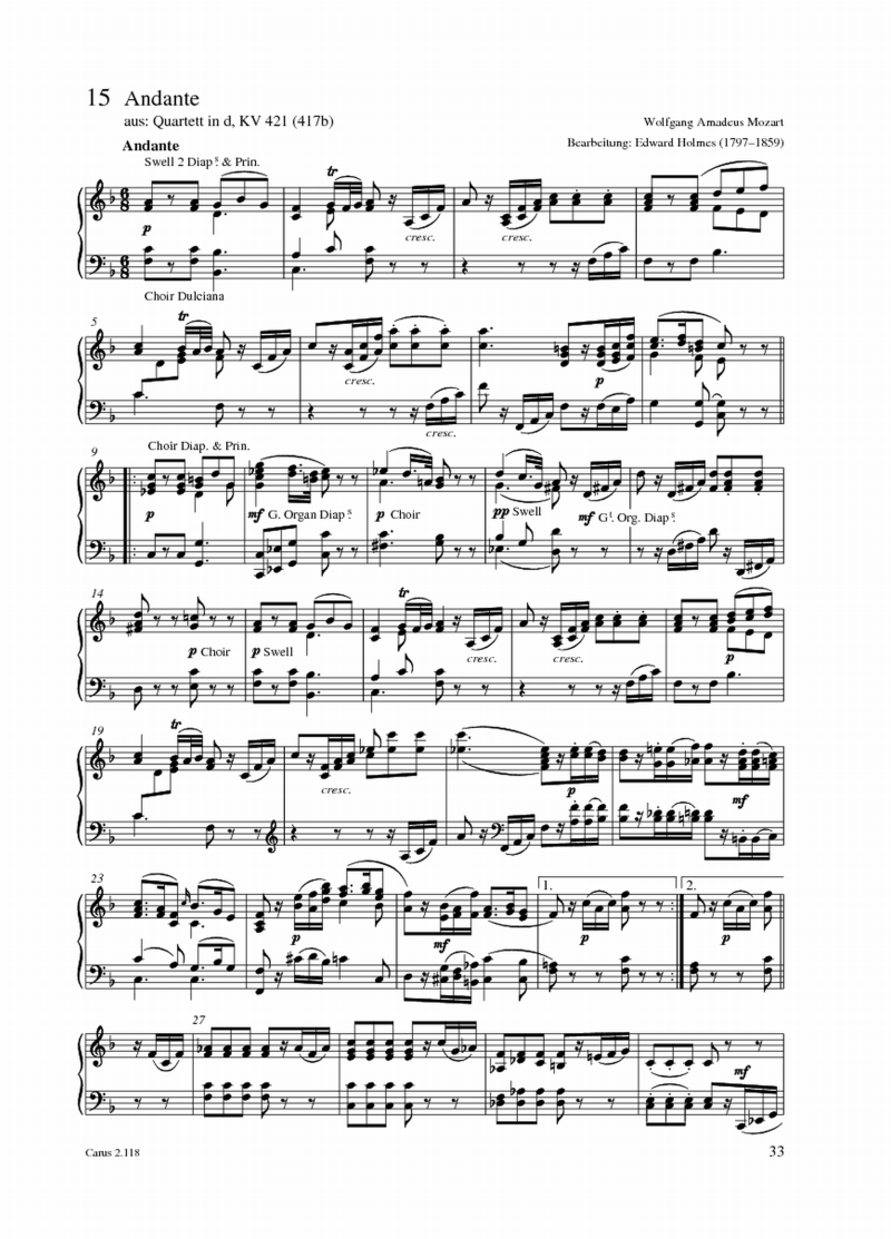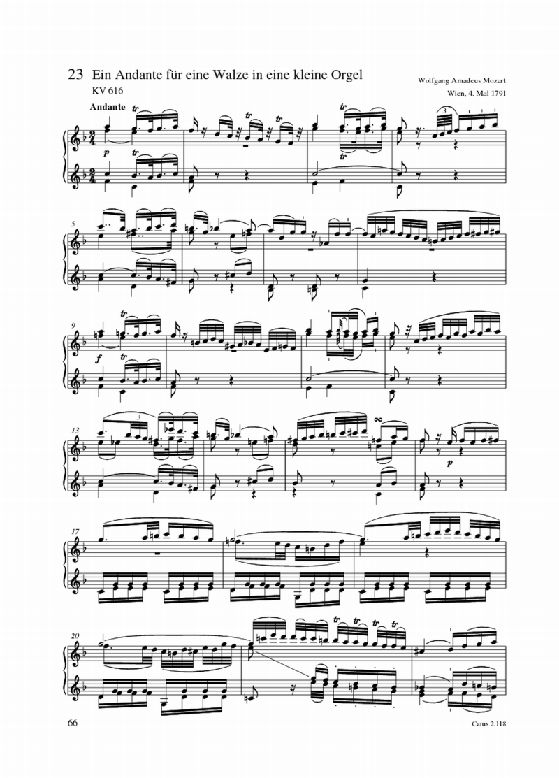 Wolfgang Amadeus Mozart, Friedrich Kühmstedt Ein Andante für eine Walze in eine kleine Orgel