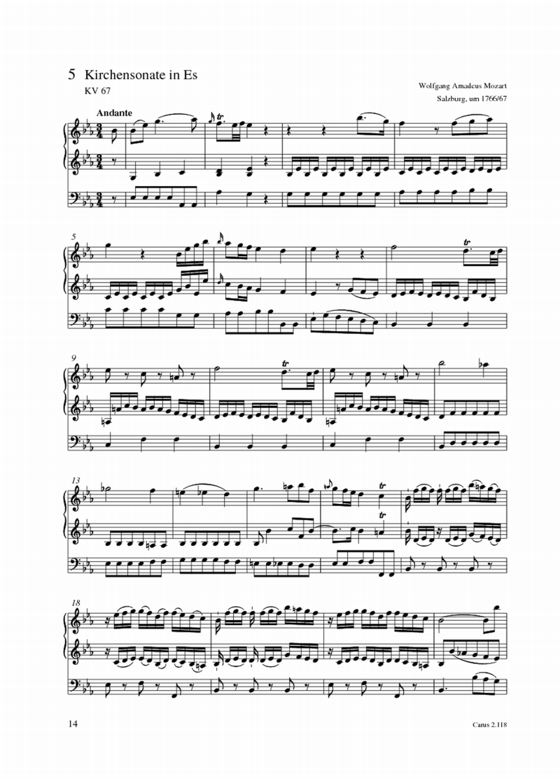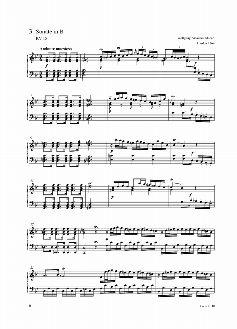 Wolfgang Amadeus Mozart Andante 2. Satz aus der Sonate in B, KV 10