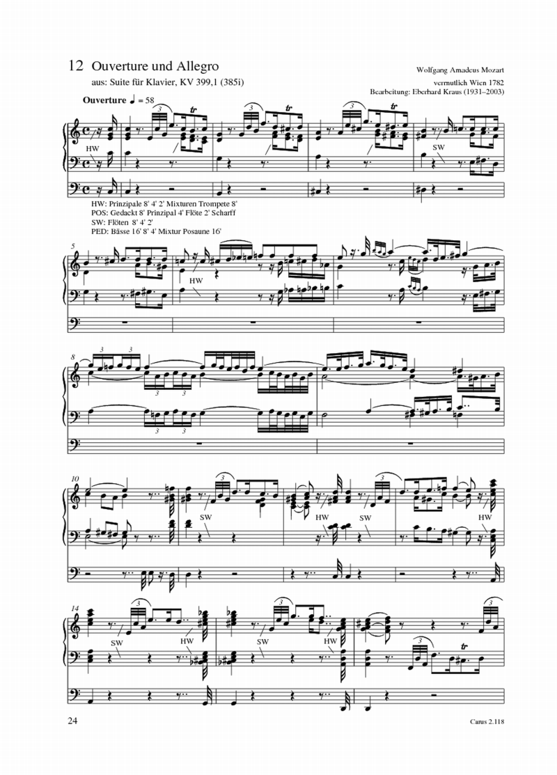Wolfgang Amadeus Mozart, Maximilian Stadler, Eberhard Kraus Ouverture und Allegro aus: Suite für Klavier, KV 399,1 (385i)