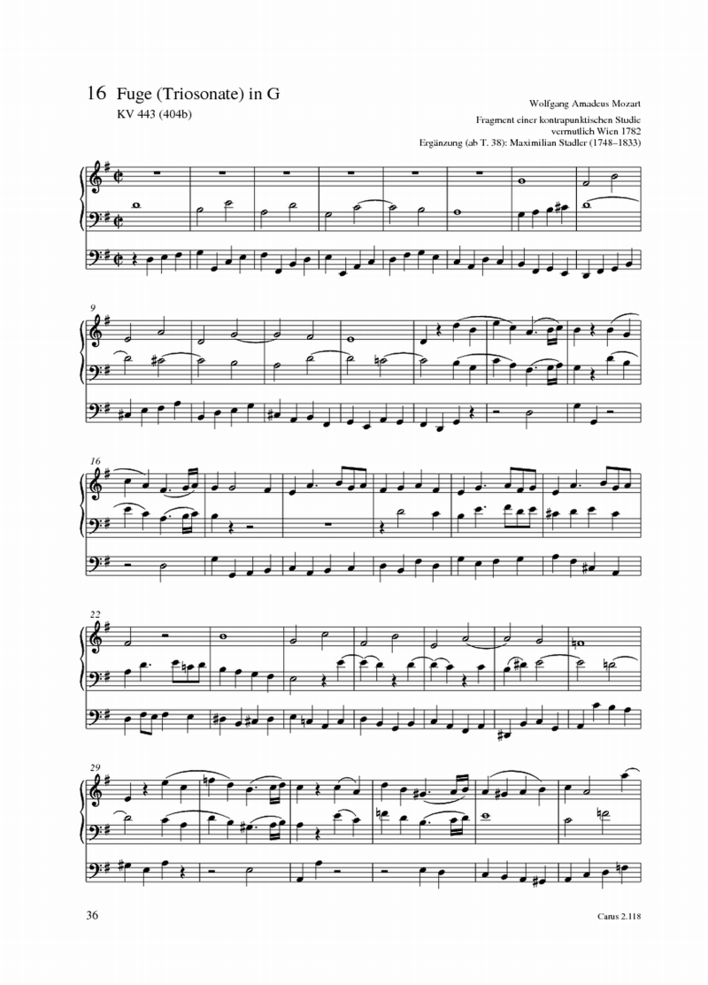 Wolfgang Amadeus Mozart, Maximilian Stadler Fuge (Triosonate) in G