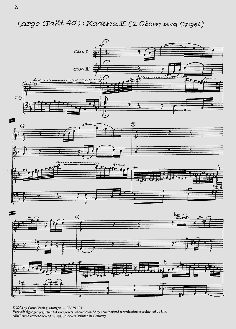 Zwei Kadenzen zum Largo. Kadenz 1: Org, Kadenz 2: 2 Ob, Org