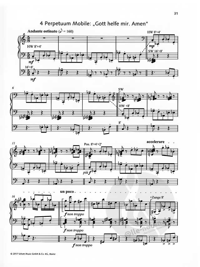 Zum Reformationsjubiläum 2017 hat sich Komponist Enjott Schneider eingehend mit der Person Martin Luther und all ihren Widersprüchen beschäftigt. Herausgekommen ist eine fulminante Orgelsinfonie, die zum Beispiel bestens für Konzerte zum Thema Reformation und Martin Luther eignen. Die fünf Sätze der Sinfonie beschreibt der Komponist wie folgt: '1. Satz: Wir glauben all an einen Gott zeigt sich mit dem quintolenartigen Anfang sehr gregorianisch und skizziert die Spannweite der lutherischen Emotionalität zwischen Mittelalter und Neuzeit. Die Irrationalität des 'Glaubens' hat letztlich Priorität vor allem Denken und Beweisen. Zu Beginn des Satzes wird mit hölzernem Klopfgeräusch an das Anschlagen der 95 Thesen an die Wittenberger Kirchentüre erinnert. Zum Teil versteckt sich die Choralmelodie in einem fast derben mittelalterlichen Saltarello, - auf Luthers Robustheit und Vitalität verweisend, mit denen er vor allem auch die einfachen Leute mitzureißen wusste.2. Satz: Vom sächsischen Kurprinzen erhielt Luther 1530 auf der Coburg den goldenen Siegelring mit der 'Lutherrose', die zum Sinnbild für seine Gnadentheologie wurde. In der für die Rose typischen Fünfblättrigkeit ist ein weißes Herz mit schwarzem Kreuz eingefasst. 'Weiß' ist für ihn Farbe der Engel und der Geister; 'schwarz' steht für den Schmerz der Kreuzigung: 'Der Gerechte wird durch den Glauben leben, aber durch den Glauben an das Kreuz'. Da als übergeordnete Symbolik aber Rose und Herz dominieren, zeigt sich hier, wie die katholische Marienfrömmigkeit zeitlebens ein Ingredienz der lutherischen Spiritualität blieb. Analog zur dominanten Fünferstruktur der Rose ist dieser Satz weitgehend in der schwebenden und poesievollen Rhythmik eines 5/8-Taktes komponiert.3. Satz: Zum Wesen des damaligen Weltbildes gehört die Allgegenwärtigkeit von Tod und Sterben, - angefangen von Pest, Kriegen bis zu den nie endenden Gefahren des Alltags. Daraus resultierten Ängste, die sich - etwa in den Bildern von Hieronymus Bosch - ins Groteske steigern konnten. Der 'Totentanz' war ein beliebtes Motiv jener Jahre. Luthers Choral Mitten wir im Leben sind / mit dem Tod umfangen von 1524 (Erfurter 'Enchiridion') basiert auf dem etwa um 750 in Frankreich entstandenen gregorianischen Media vita in morte sumus und inspirierte mit seinem Vergänglichkeitsgedanken zu einem holzschnittartigen Gestus.4. Satz: Jenes berühmte auf dem Wormser Reichstag 1521 geäußerte Bekenntnis 'Ich kann nicht anders / hier stehe ich / Gott helfe mir / Amen' ist nicht Luthers Wortlaut, sondern die später als Flugblatttext zugespitzte Version. Es repräsentiert dennoch plakativ die Geradlinigkeit und Zwangsläufigkeit seiner Mission. Musikalisch wurde daraus ein 'Perpetuum Mobile', - also ein hartnäckiger, ostinater und nie enden wollender musikalischer Gestus.5. Satz: Die Feste Burg ist wiederum eines der großen Sinnbilder Martin Luthers, das mit seinem leuchtenden C-Dur wie kein anderes Lied den protestantischen Gedanken und Eigenwillen der Reformation verkörpert. Heinrich Heine bezeichnete es als 'Marseiller Hymne der Reformation', Friedrich Engels als 'Marseillaise der Bauernkriege'. Diese Streitbarkeit wird hier nicht zu Ende gedacht sondern eher gebrochen: mit einer jubilierenden 'Vogelstimmenversion' der Melodie zeigt das Finale eine eher kammermusikalisch Seite.... der 'Freiheitsgedanke des Christenmenschen'.'
