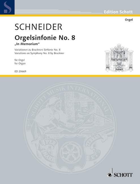 Einer Idee des Erfurter Domorganisten (und Widmungsträger des Werkes), Silvius von Kessel, folgend, knüpft Enjott Schneider in seiner Orgelsinfonie Nr. 8 'In Memoriam' an Anton Bruckner an, verarbeitet variativ Themen aus dessen Sinfonie Nr. 8 und stellt diese aber dem 'Haus-Choral des Erfurter Doms', 'Wachet auf, ruft uns die Stimme', gegenüber. Brucknersches Material wird zum Ausgangspunkt genommen und von Schneider in vier Sätzen weiterentwickelt: 'Metamorphosen' ist auch bezeichnenderweise der Eingangssatz überschrieben, ehe in einem 'Scherzo sinistro' eine geradezu unheimliche Atmosphäre beschworen wird. Aus einer Zwölftonreihe (im 3. Satz), eingebettet in eine transzendente Stimmung, entwickelt sich schliesslich der Choral, der nun als Finale-Hauptthema mit Brucknerschen Stilmomenten verschmolzen und zu einem grandiosen Schluss geführt wird - eine spannende und aufwühlende Musik.