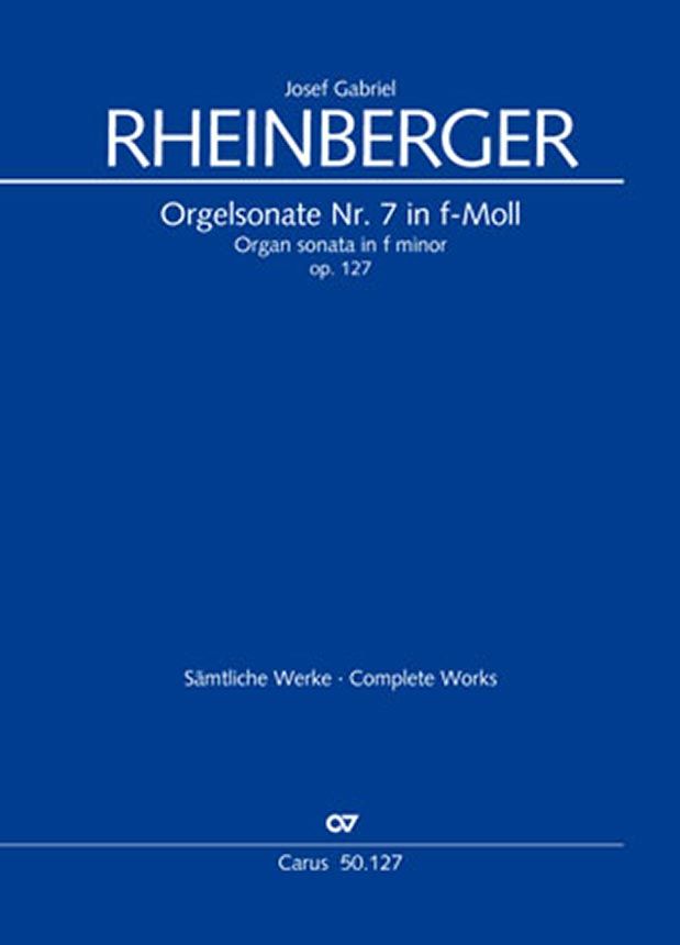 Die dreisätzige Orgelsonate Nr. 7 in f-Moll op. 127 stammt aus dem Jahr 1881. Auf ein Präludium mit fünf markanten Themen folgt ein Andante, das Rheinberger selbst Jahre später als Rhapsodie für Violine oder Oboe und Orgel bearbeitet hat. Das Finale enthält eine Fuge mit zwei Themen. Einzelausgabe aus der Rheinberger-Gesamtausgabe