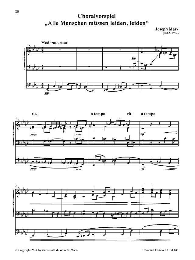 Marx war in der ersten Hälfte des 20. Jahrhunderts einer der beliebtesten und meistgespielten Komponisten in Österreich, verschwand aber mit dem Aufkommen zeitgenössischer Musik fast vollständig. Umso erfreulicher ist, dass die Universal Edition, in Zusammenarbeit mit der Joseph-Marx-Gesellschaft, 50 Jahre nach seinem Tod die erste Ausgabe von zwei Bänden seiner Orgelwerke veröffentlicht.