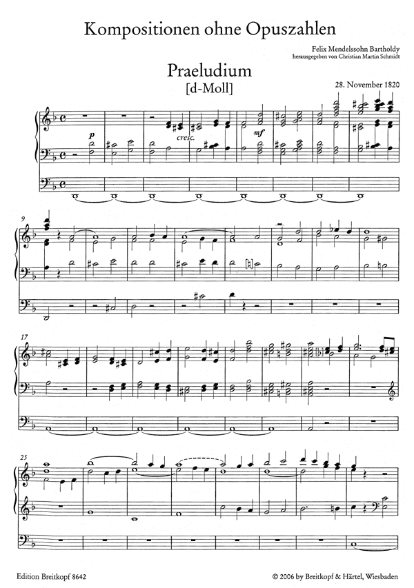 Felix Mendelssohn Bartholdy Praeludium für die Orgel c-Moll
