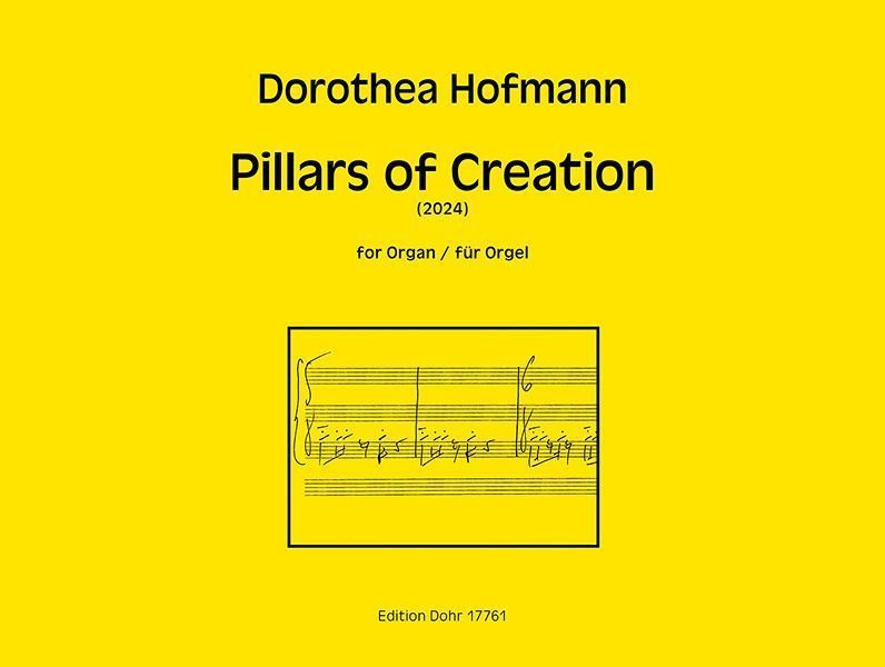 Die "Pillars of Creation" ("Säulen der Schöpfung") genannte Formation im 7000 Lichtjahre entfernten Adlernebel erstreckt sich vier Lichtjahre in den Weltraum hinein. An ihren Spitzen bilden sich Protosterne aus molekularem Wasserstoff und Staub. Wasserstoff ist das häufigste Element im Universum und es ist in seinem häufigsten Isotop auch das am Einfachsten aufgebaute Element: ein Proton und ein Elektron. Mehr nicht. Und nicht nur für die Entstehung von Sternen ist Wasserstoff grundlegend, sondern Wasserstoff ist auch in allen lebendigen Organismen ein wesentlicher Baustein: auch in uns Menschen. Die elektromagnetischen Wellen der Wasserstoff-Atome lassen sich im sichtbaren Bereich Farben zuordnen, doch da Farben und Töne gleichermaßen Schwingungen sind, lassen sich aus den Frequenzen der farbigen Spektrallinien des Wasserstoffs durch Oktavierung auch hörbare Töne ermitteln: gis - cis - dis - e und f. Wasserstoff klingt also! Dieser "Wasserstoff-Klang" ist der Ausgangspunkt meiner Komposition. Erst allmählich werden sich andere Töne dazu mischen, doch immer wieder leuchtet strahlend der "Wasserstoff-Akkord". (Dorothea Hofmann)