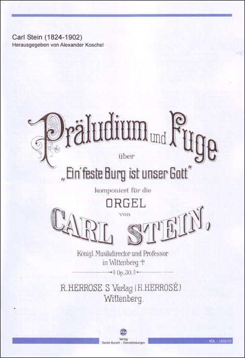 Carl Stein, geboren am 28.10.1824 wirkte als Kantor und Organist an den Kirchen der Lutherstadt Wittenberg. Seine Musikalische Tätigkeit in der Wiege der Reformation brachte die Bearbeitung des Luther-Liedes "Ein´feste Burg ist unser Gott" hervor.