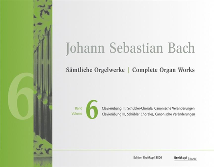 Band 6 enthält drei Sammlungen, die Bach selbst zum Druck befördert hat: der Dritte Teil der Clavier-Übung erschienen 1739, die Sechs Choräle von verschiedener Art (Schübler-Choräle) und die Canonischen Veränderungen über 'Vom Himmel hoch' in getrennten Ausgaben wohl 1747/48. Keine dieser Sammlungen hatte von Anfang an die Gestalt, die der Komponist am Ende als gültig ansah. Aus diesem Grund betrachtet Werner Breig in seiner Einleitung besonders Fragen der Entstehung. Wesentliche Erkenntnisse zur Genese der Clavier-Übung III sind dabei erst nach dem Erscheinen des Werks in der Neuen Bach-Ausgabe gewonnen worden. Die insgesamt übersichtliche Quellenlage bringt es mit sich, dass für diesen Band kein ergänzendes Material online angeboten wird. Editorisch notwendig jedoch ist der Abdruck der Canonischen Veränderungen BWV 769 in drei Fassungen: im Faksimile des Originaldrucks, in einer spielpraktischen Einrichtung sowie in der Fassung des Autographs (BWV 769a).