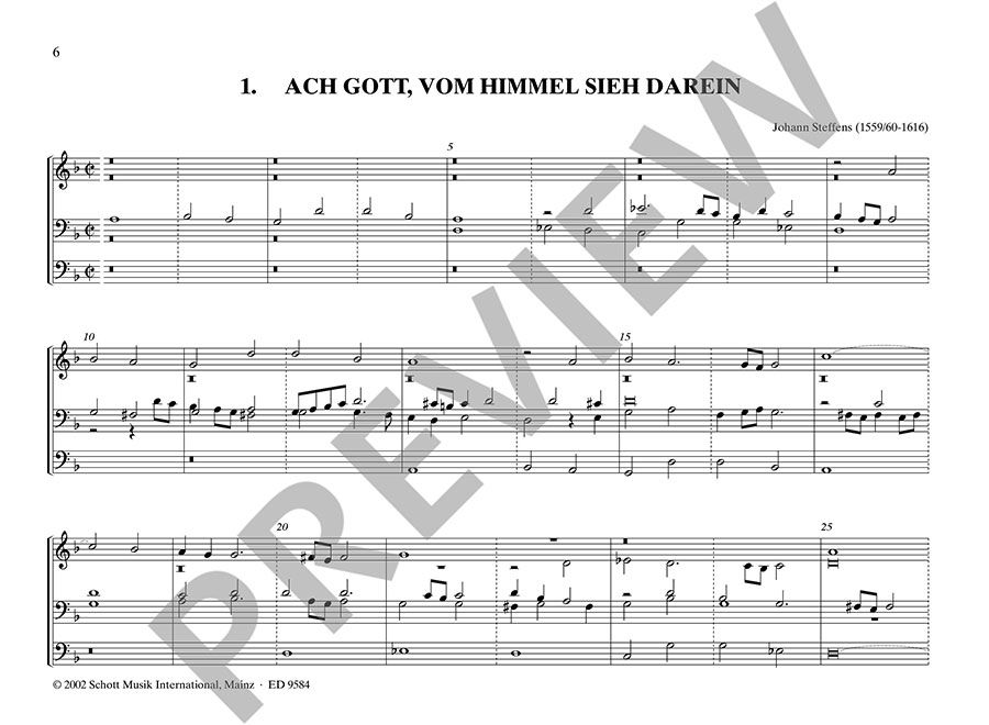 Johann Steffens wirkte als Stadtorganist an St. Johannis in Lüneburg und ist einer der Gründerväter der Norddeutschen Orgelschule. Der Band enthält 3 Choralbearbeitungen (darunter ein Zyklus über 'Veni redemptor'/Nun komm der Heiden Heiland) sowie eine 'Fantasia', eines der wenigen freien Orgelwerke jener Zeit mit ausnehmend musikantischer Wirkung.