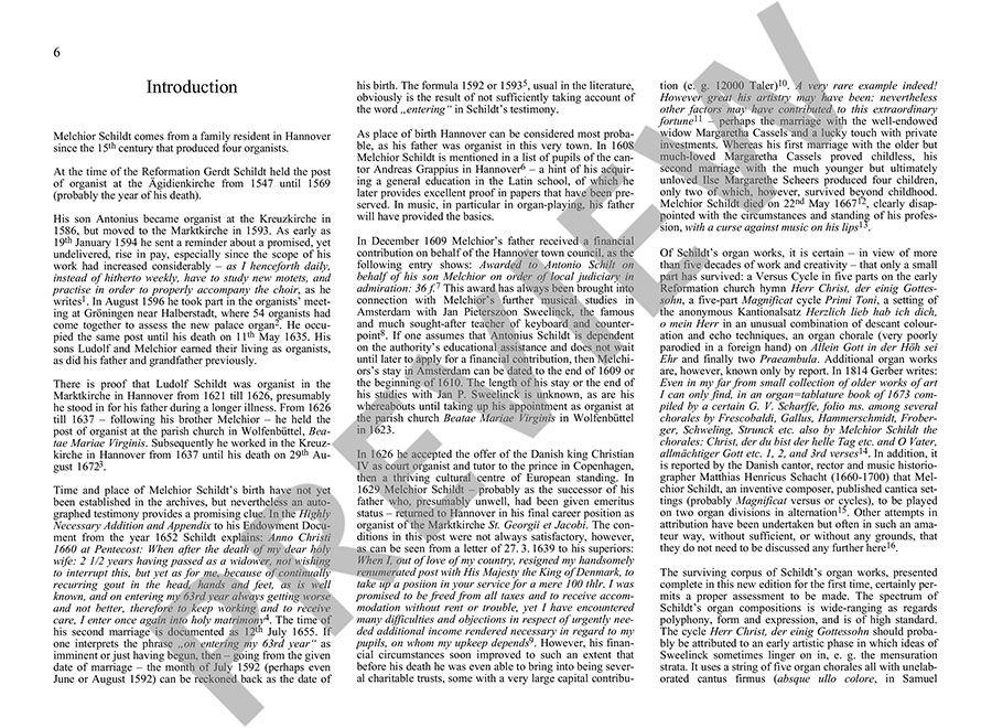 Melchior Schildt (1592-1667) war Organist der Marktkirche in Hannover und u.a. Schüler von J. P. Sweelinck. Neben zwei frühen freien Orgelwerken (Praeambulum in G) enthält der Band Variationsreihen über das Magnificat und den Epiphanias-Choral 'Herr Christ, der einig Gottessohn'.