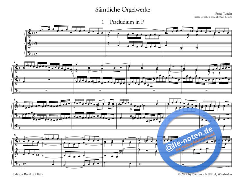 Die Orgelwerke Franz Tunders setzen sich aus vier Praeludien, einer Canzon und neun Choralbearbeitungen zusammen. Die Werke bilden ein wichtiges stilistisches Bindeglied zwischen Sweelinck und Buxtehude. Auf der Grundlage neuer Erkenntnisse zu Quellen, Stilistik und Aufführungspraxis der Orgelmusik des 17. Jahrhunderts kommt Michael Belotti bei seiner Neubewertung zu zahlreichen neuen Lösungen, was fragliche oder lückenhaft überlieferte Stellen betrifft. In etlichen Fällen entschied sich der Herausgeber jedoch dazu, den Quellen einfach zu folgen, weil sie den Verbesserungsversuchen der älteren Ausgaben überlegen sind. Auch insofern verdient Belottis Urtext-Neuausgabe das Prädikat 'besonders quellennah'.