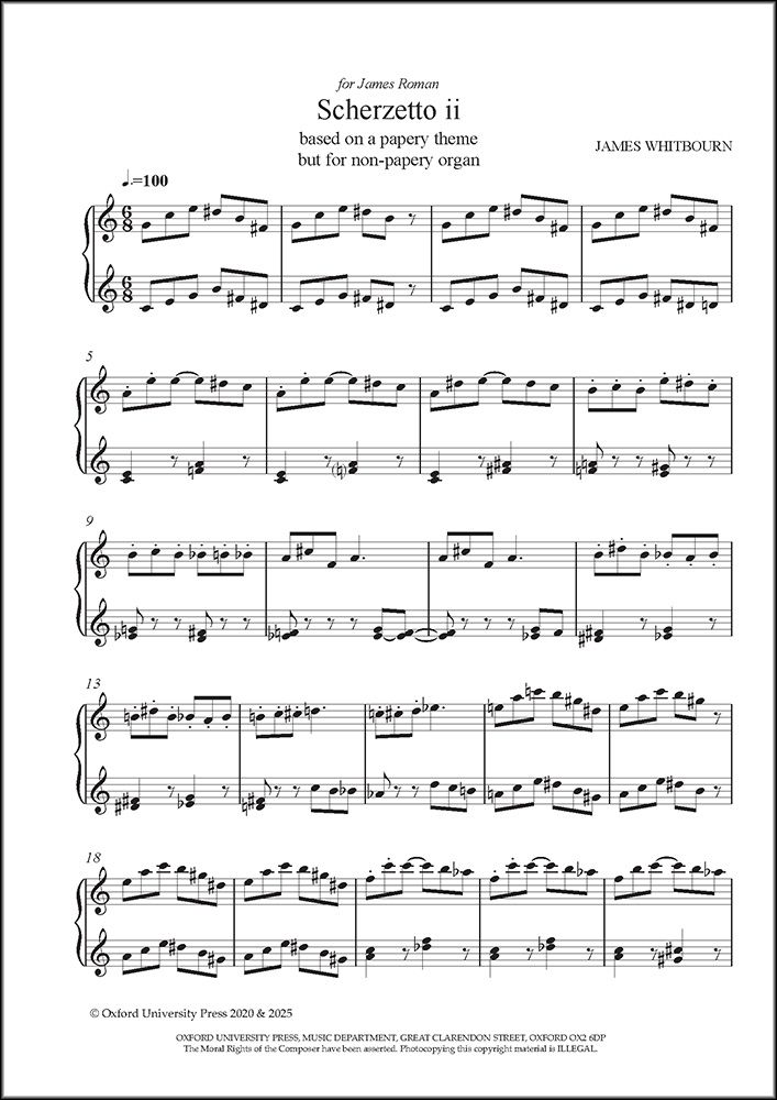 This whimsical piece is dedicated to James Roman, organist at St Luke's United Methodist Church in Houston, upon the church's acquisition of an Orgelkids USA kit. Orgelkids enable children to build a two-rank, two-octave mechanical-action pipe organ, and this Scherzetto aligns perfectly with the joyful creativity of their mission.