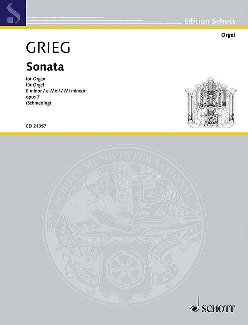 Der Zeit seines Lebens der Religion und Kirche skeptisch gegenüber stehende Komponist Edvard Grieg schuf nur wenige Werke mit geistlichem Einfluss, so einige Gelegenheitskompositionen (Ave maris stella, Dona nobis pacem) und die späten Chorpsalmen Op. 74 (allerdings auf Texte eines norwegischen Dichters). Mit der Orgelmusik und der geistlichen Musik wird er während seines Studiums am Leipziger Konservatorium (1858 - 1862) evtl. als Hörer in der Leipziger Thomaskirche in Berührung gekommen sein. Aus seiner Studienzeit sind einige Studierfugen erhalten, die an eine Ausführung auf der Orgel denken lassen. Grundlage dieser Bearbeitung der Klaviersonate e-Moll opus 7 ist der Urtext. Ziel jeder Bearbeitung sollte es sein, einen Ausgleich zwischen originalem Notentext und den Möglichkeiten des gewählten Instruments zu schaffen. Dabei wird eine grösstmögliche Annäherung an das Original angestrebt, gleichzeitig aber auch ein orgelgemässer Satz. Neben der Aufteilung auf Manuale und Pedale werden dabei kleinere Anpassungen im Notentext notwendig, um z. B. Klavierpedaleffekte oder Figurationen überzeugend auf der Orgel erklingen zu lassen.