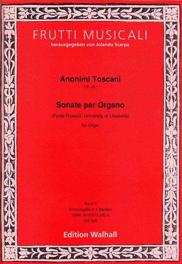 Herausgegeben in 4 Bänden als Erstausgabe von Jolando Scarpa. Die 'Ricasoli'-Sammlung ist ein wertvolles Zeugnis mittelitalienischer Orgelkunst in der zweiten Hälfte des 18. Jh. und ist sowohl in stilistischer Hinsicht als auch bezüglich ihres musikalischen Wertes mit den Werken von Padre Martini vergleichbar. Es finden sich darin sämtliche Formen der damals üblichen Orgelmusik: freie Toccaten, Fugen und liturgische Versetten für Messen und andere kirchliche Anlässe. Reihe Frutti Musicali
