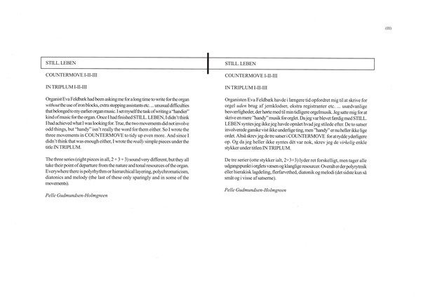 Once I had finished STILL. LEBEN, I didn't think I had achieved what I was looking for. True, the two movements did not involve odd things, but 'handy' isn't really the word for them either. So I wrote the three movements in COUNTERMOVE to tidy up even more.