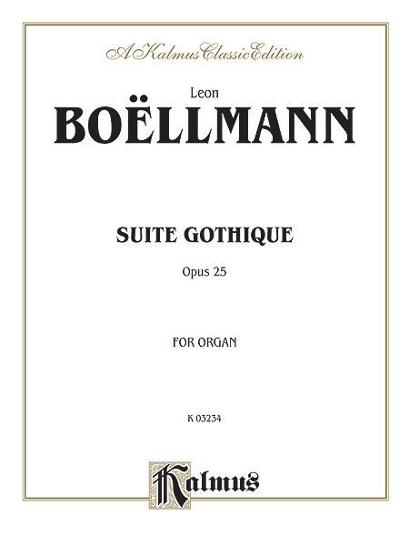 The Suite Gothique (Opus 25) for organ was written by Leon Boellmann in 1895, and consists of four movements: Introduction - Choral (C Minor), Menuet Gothique (C Major), Prière à Notre-Dame (A-flat Major), and Toccata (C Minor) which is the most famous part of this work. "Prière à Notre-Dame" and "Toccata" are Federation Festivals 2016-2020 selections.