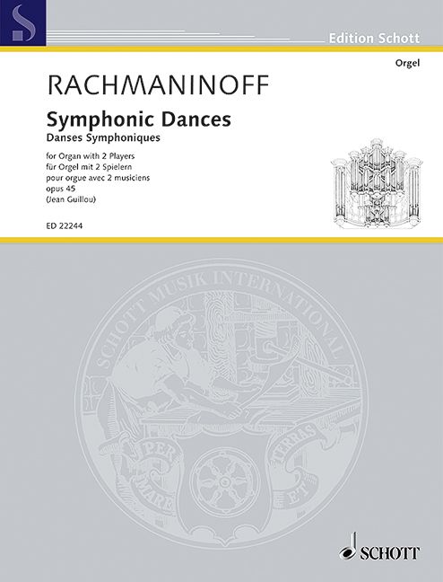 Die Orchestersuite Sinfonische Tänze op. 45 von 1940 ist Rachmaninows letztes Werk. Fast zeitgleich verfasse er ein Arrangement des Stücks für 2 Klaviere, das er mit Vladimir Horowitz im privaten Rahmen spielte. Der französische Komponist Jean Guillou übertrug die Symphonic Dances auf 2 Orgeln.
