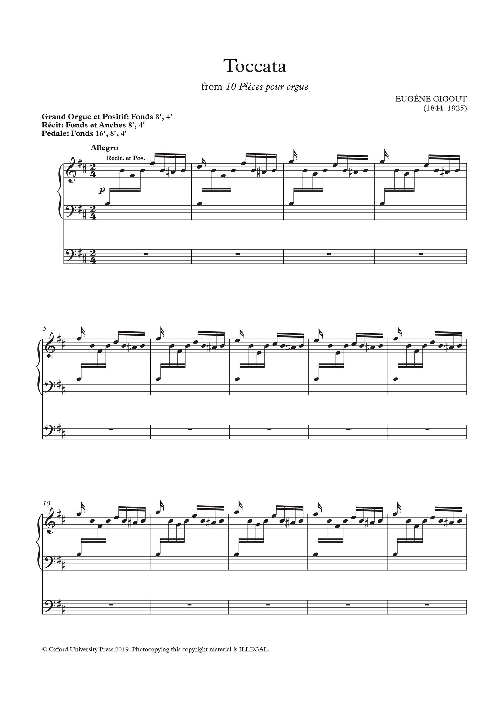 From the collection The Oxford Book of Ceremonial Music for Organ, Book 2, this rippling Toccata is Gigout's best-known work, and is a favourite encore piece. Suitable for players of intermediate to advanced ability.